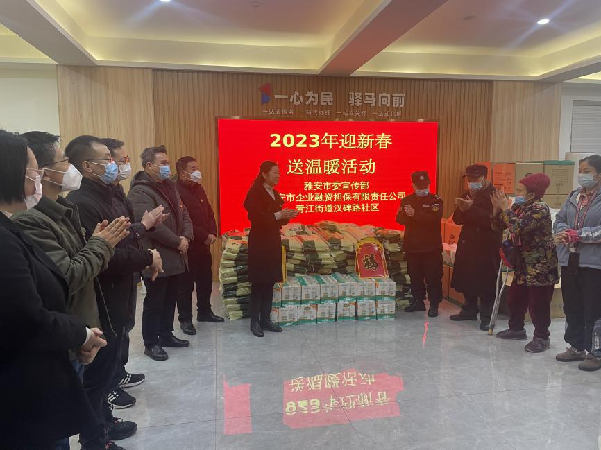在新春佳節(jié)來(lái)臨之際,為讓困難群眾過(guò)上一個(gè)溫暖、祥和的春節(jié),1月13日,市擔(dān)保公司與市委宣傳部、漢碑路社區(qū)共同開(kāi)展“迎新春送溫暖”活動(dòng),用愛(ài)心詮釋責(zé)任,用行動(dòng)書寫擔(dān)當(dāng)。